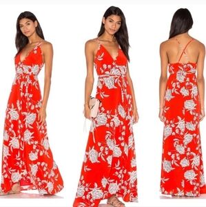 Revolve Yumi Kim 100% Silk Rush Hour Red Carnation Wrap Maxi Dress Size 2