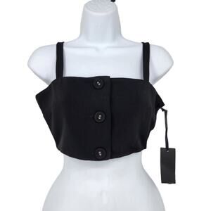 Revolve h:ours Black Issey Button Front Sleeveless Crop Top Size Small