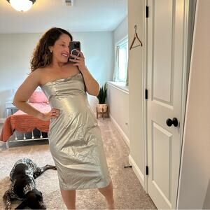 Revolve h:ours Silver Strapless Knee Length Mini Dress XL