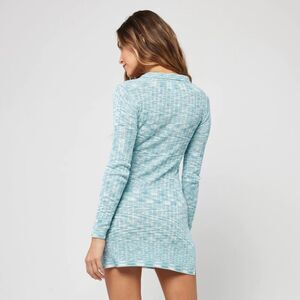 Polish and personality go together in the Aria Dress. This slim fit mini with A line silhouette and side slits features slim sleeves and a deep ribbed V neck and collar, and can be kept casual with sandals or dressed up with heels.