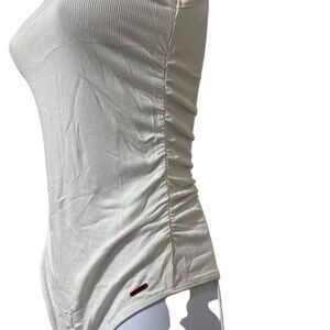 Revolve nPhilanthropy White Ribbed Prince Tank Thong Bodysuit Ruched Side XS NWT