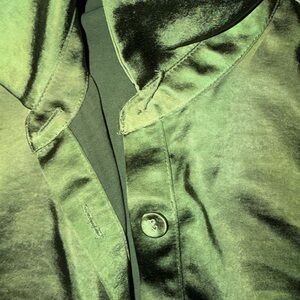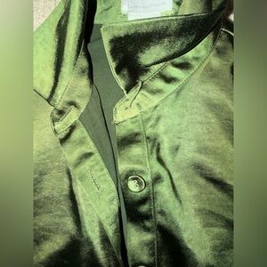 Worn once, beautiful, silky fits not like XXS , runs larger. I’m XS/S and it fits me. Please note one of buttons is missing, it’s under the collar , you can’t really tell.