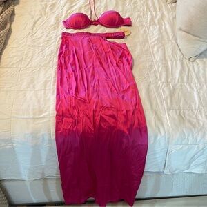 Camila Coelho pink Vicky bralette top and skirt two piece set. NWT.
