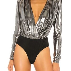 Revolve x Michael Costello Silver Metallic Top with Black Sequin Skirt