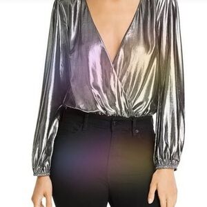 Stunning silver metallic top paired with a black sequin skirt. Perfect for a night out.