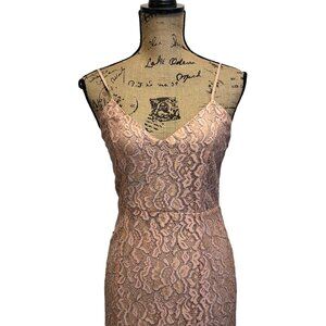 Charming Revolve x NBD Brielle Midi Dress in sheer blush lace with delicate spaghetti straps. Perfect for any occasion and designed to flatter, this size small dress is a must-have.