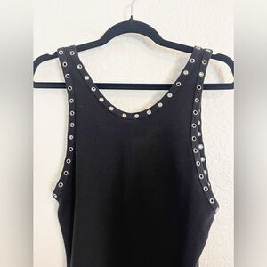 Revolve x RE/Done black Dress Eyelet Grommet Silver Metal Ribbed Cotton S. NWT