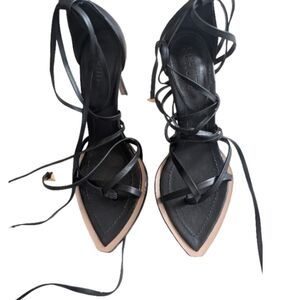 Revolve x Schutz Calandra Black Leather Lace-Up Stiletto Heels Size 7