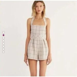 Halter neck jumpsuit with fitted waist and relaxed short. Zip closure at back. Fully lined. Proudly Australian designed and made. Model is 5’10 and wears a size XS. Main: 100% Linen; Lining: 100% Cotton. Cold hand wash in mild detergent. Wash separately. Do not soak, bleach or wring. Dry without delay away from direct sunlight or heat. Do not tumble dry. Cool iron only. Dry cleanable.