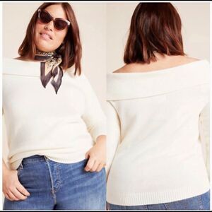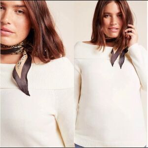 Revolve Anthropologie Ivory Shelby Off The Shoulder Pullover Sweater