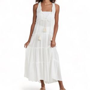 Revolve Coolchange Everly Sleeveless Tiered Tassel Maxi Dress, Size Med White- This lightweight coolchange dress features a tiered design and tassel ties to accent your beachside look. Slip it on over your bikini after a day in the sun.