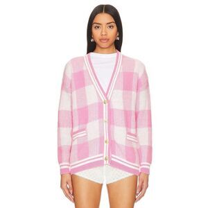 Revolve More To Come Bonnie Cardigan SZ XS Pink Peppy Plaid Coquette Gold Button