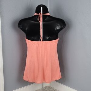 Revolver V-Neck Halter Top in a light peachy coral with a built in cami.