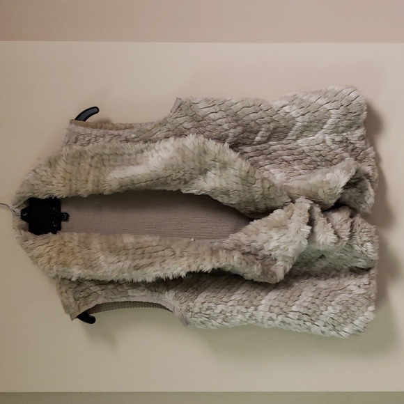 Faux fur vest Ruffle detail Front clasp closure Size S