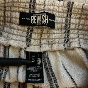 Rewash Brand Women's SZ S Linen Blend Pants Striped Beige Brown Straight Leg