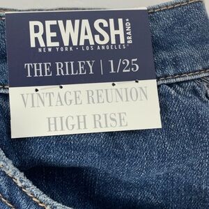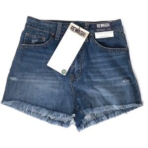 Rewash Dark Cut-Off Jeans Size 1 or 25 in a style called “The Riley” or “Vintage Reunion”. They are a great fit jean short. My daughter got the wrong size, they are brand new with tags!