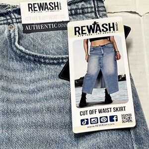 Rewash Denim Skirt Womens 1/25 Midi Maxi High Slit Raw Edge Western Grunge Boho