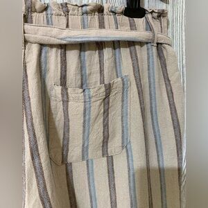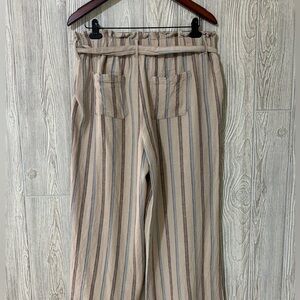 Rewash Linen Paper Bag Waist Wide Leg Striped Raw Edge Split Hem Crop Pants L