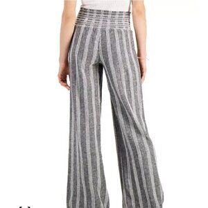 Rewash Smocked Wide Leg Pants Size L Pull On Elastic Waistband Linen Blend Summer Trend Striped Gray White