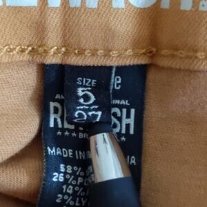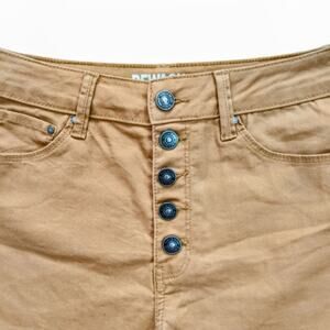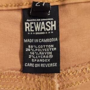 NWOT Rewash Super High Rise Ultra Stretch 'Casey' Shorts. 5 button closure. 5 pocket design. Cut off raw edge at hem. Honey mustard color.