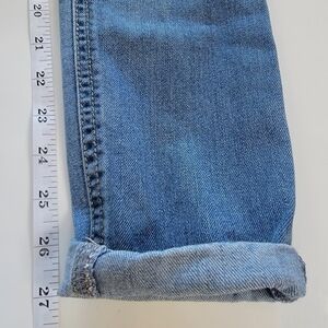 Rewash Vintage Reunion distressed jeans. 5 pockets. Light wash. Stretch cotton/poly/rayon/spandex. Waist measures 14" flat. 5" zipper rise. 27" inseam, rolled hem is sewn at seam. Size 1 (25)