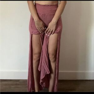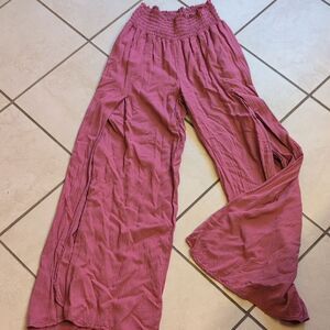 Rewash Wide Leg Smocked Waist Pants with leg slits dusky pink size L