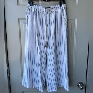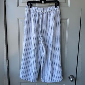 Rewash Women’s Gray Striped Cropped Pants Large Elastic Waist Wide Leg Boho