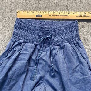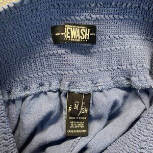 Rewash Womens Wide Leg Blue Pants,Elastic Waist,Pockets,Size M,Rayon/Linen