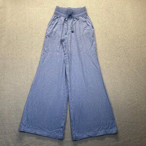 Rewash Womens Wide Leg Blue Pants,Elastic Waist,Pockets,Size M,Rayon/Linen/Cotton
