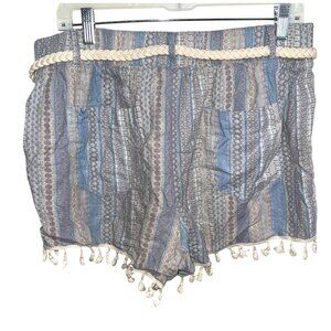Rewash Womens XL Striped Boho Shorts With Braided Rope Belt & Tassel Trim