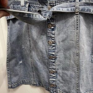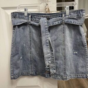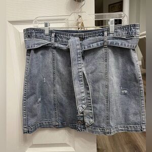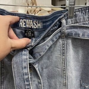 Rewash button up acid washed distressed Denim Skirt size 11/30 Jean Skirt Belt
