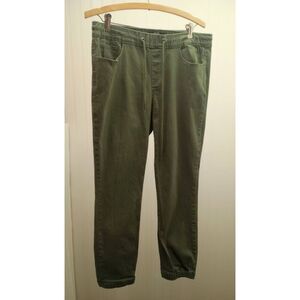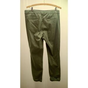 Pre-owned olive green Midway pants. Made like joggers with elastic waistband and drawstring as well as cuffed bottoms. Please note these pants do have some defects as shown in photos