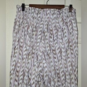 Rewash pants size large side to side measurements is 15.5 with stretch rise is 12.5 " inseam is 30.5 " top of waist to bottom hem is 40.5" wide bottom of legs linen blend pants if you have any questions please message me bundle for bigger deals Bin-62