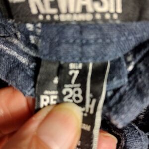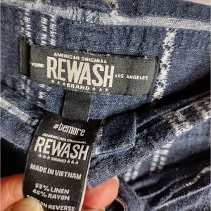 linen rayon blend shorts, blue and white striped with tie belt. K1