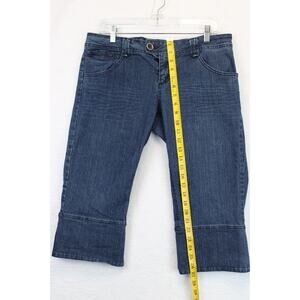 Rewind Capri Jeans Women Size 9 Mid Rise Flat Front Button Hem Stretch Blue Pants