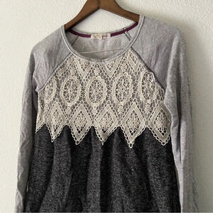 Rewind Cozy Terry Cloth Lace Sweater Top Gray XS Casual Lounge