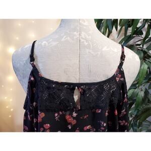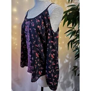 Rewind Women's M Floral Boho Embroidered Lace Cold Shoulder Black Peasant Top