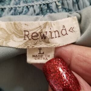 Rewind - Juniors Blue Tiered Flutter Sleeve Dress; Size - Large; Material - Shell - 100% Polyester, Lining - 100% Polyester; Care - Machine Wash Cold, Gentle, Hang To Dry; Made in China; Smocked around Neck Line, Can be worn on or Off Shoulder, 3 Tiered Levels, Gathered Rouched, Pull on, Fully Lined,
