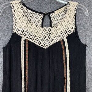 Rewind Knit Shift Dress Women Medium Knee Length Crepe With Lace Bodice and Braid Trim