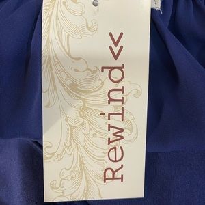NWT Rewind brand navy blue lace dress size medium. It has a high low hem line, longer in the back. It has thin straps and is a halter style neckline. The lace lends intakes to being very boho inspired.