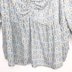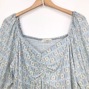 Rewind NEW Light Blue Floral Double Crepe Shirred Front Peasant Boho Blouse