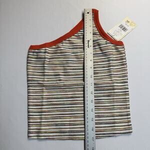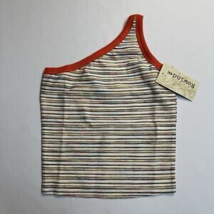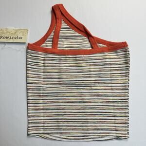 Rewind One Shoulder Knit Tank Top Junior's Size XS Ivory, Orange