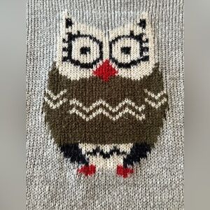 Rewind Owl Gray Acrylic Sweater, Fuzzy Crewneck Pullover size Small