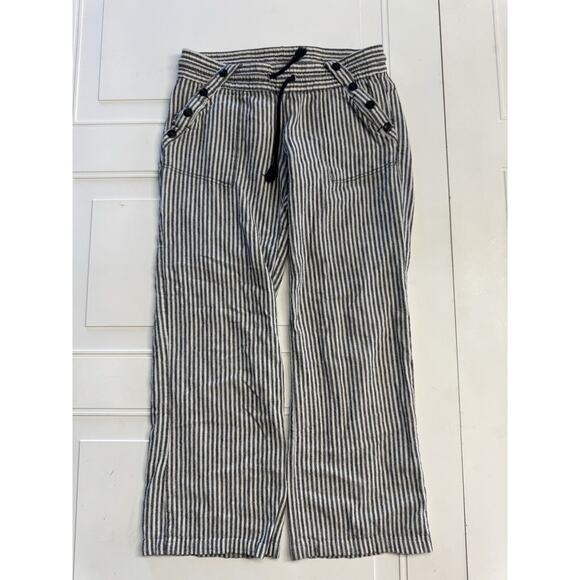 Rewind Pants Striped Linen Blend Wide Leg Raw Hem Drawstring Slash Pocket Size 7