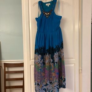 Navy floral and sheer! Top is grey t-shirt material. Excellent used condition. Small side slits at the bottom.