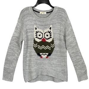 Rewind Women's Gray Owl Sweater Relaxed Fit Soft Cozy Size M Fun Fall Sweaters