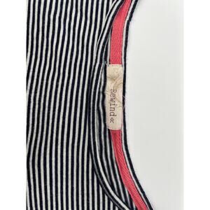 Rewind Women’s Top – Striped & Floral Color Block Tee – Size A (Small) – Green, Black, Pink