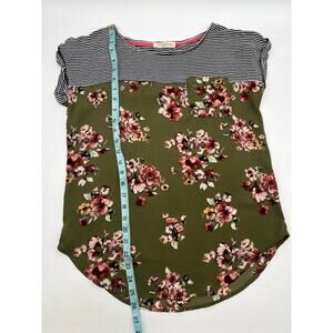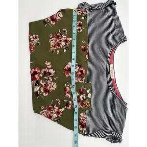 Rewind Women’s Top Striped & Floral Color Block Tee Size Small Green, Black, Pin
