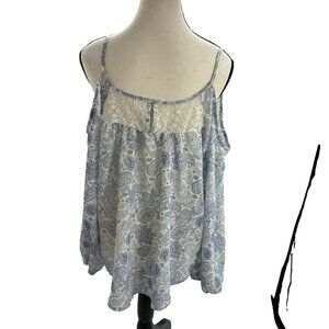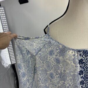 Rewind Womens XL Blue Paisley Boho Blouse Cold Shoulder Summer Spring