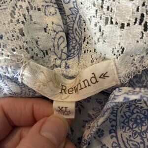 Rewind Blouse Womens Size XL. Excellent condition. Cold shoulder, semi shear, Boho, embroidered, long sleeve. Measurements laying flat: length 26 inches, pit to pit 22 inches.